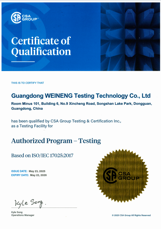 广东威能检测技术有限公司位于广东省东莞市松山湖园区,专注于清洁能源电力产品检测认证。检测业务覆盖国内、欧美、澳洲、巴西等海外地区。目前公司已获得中国 CNAS(L13753)、CMA(202019014977)、CGC 及国际 CSA、TÜV 等机构授权,严格遵循 ISO/IEC17025 标准体系规范运行,确保检测流程科学规范,助力产品实现合规化与国际化。 威能检测实验室配备用电6MW,场地7000余平米,实验室配备各类电芯、电池模块和电池簇及集装箱,变流器,充电桩等检测设备超500 台,搭建了全套储能电池、BMS、EMS、PCS、工商业柜、预制舱检验检测试验平台,以及电力和消防建模仿真平台。公司能独立完成GB、IEC、UL、UN及巴西强制法规等各类国内和国际检验检测标准规范,同时,公司建立大规模火烧试验和UL9540A等消防验证平台; 公司拥有超过200个300A~500A电芯通道,各类电池Pack通道超80个,电池系统平台4套,同时配备环境仓和液冷设备; 公司大型预制舱系统试验平台可满足8MWh 交直流电力储能系统环境、性能、安规及并网等各类检测需求,配套大型模拟高低温环境仓、EMC大型屏蔽室。同时配备满足20尺预制舱级的IP等级检测平台和盐雾测试平台,大型安全试验房能满足工商业柜及预制舱级别的热失控扩散试验。 公司建成投入1MW, 300K、200K 及 45K 逆变器试验平台,满足各类储能逆变器及变流器的检验需求; 公司与百余家主流储能企业进行深度合作,得到客户的一致好评。