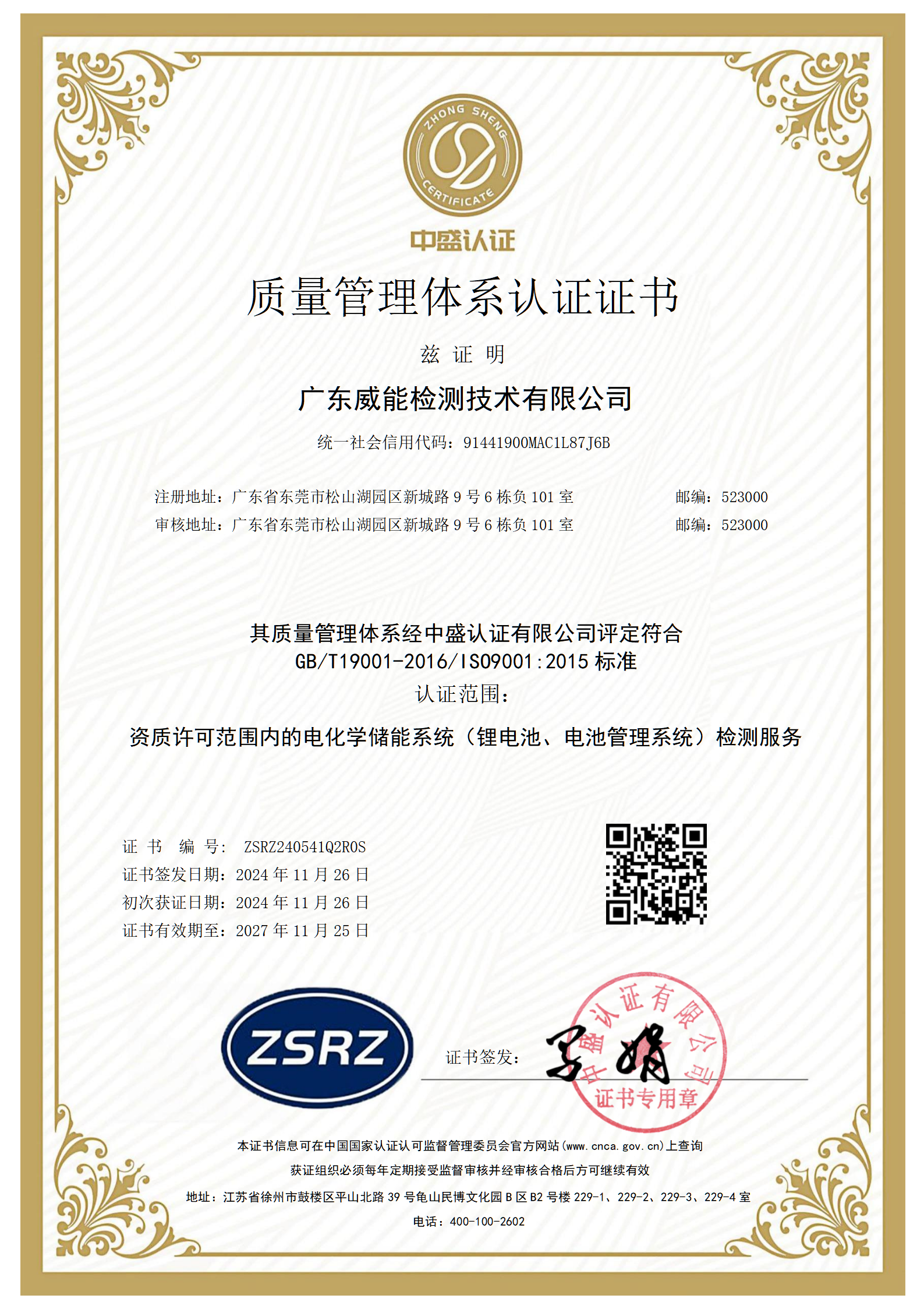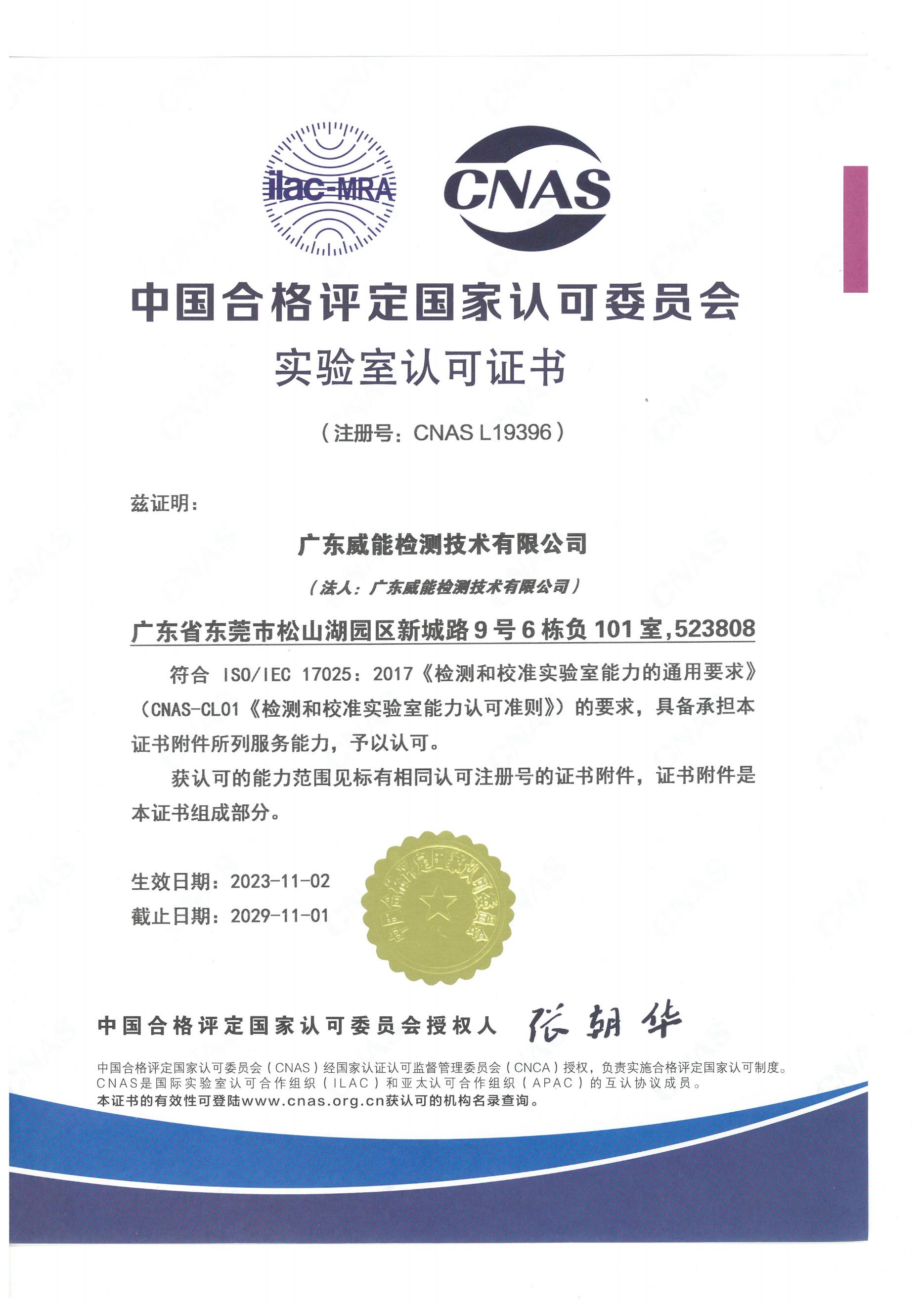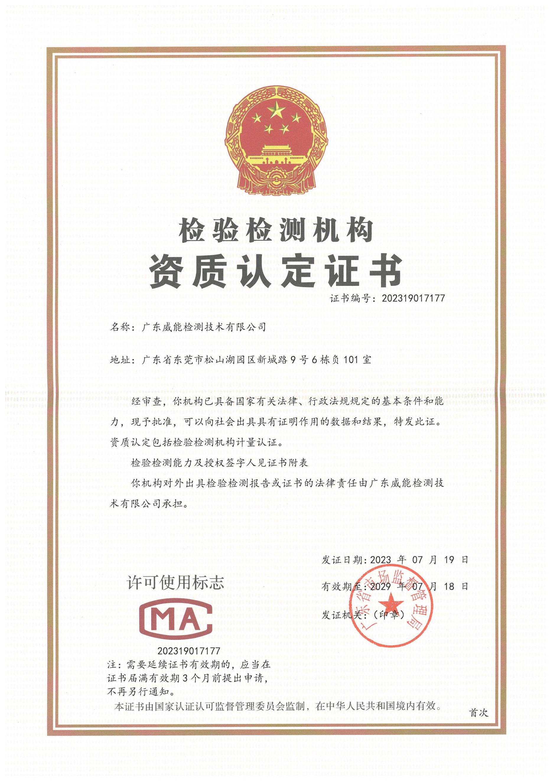 广东威能检测技术有限公司已成功获得GB/T 36547-2024、GB/T 36548-2024标准的CNAS和CMA检测资质,具备该标准的全项检测能力。